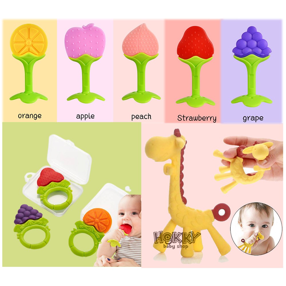 HK Mainan Gigitan Bayi Bentuk Buah / Animal BPA Free Teether Baby Cute