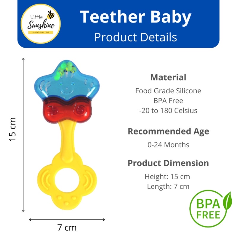 Harga Sunshine BabyToy - Teether Bayi BPA free Star Rattle Mainan Gigitan Bayi Tumbuh Gigi BPA Free Kado Bayi Newborn
